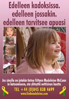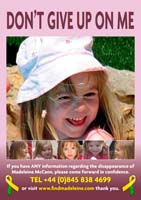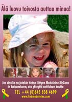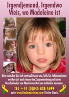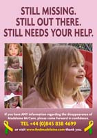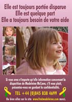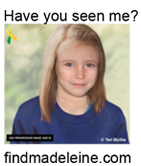 Fortunately, there are many cases of abducted children being found and returned to their families - even after long periods of time. The vital piece of information that leads to a happy and longed-for reunion is usually thanks to a caring and vigilant member of the general public, often recognising a face from a poster. In fact, 1 in 6 children are recovered after being recognised from a poster! It is for this reason that we must continue to remind people of Madeleine and the fact that she is still missing. We are extremely grateful therefore to everyone for downloading and displaying a poster - It could be the poster that brings Madeleine home.